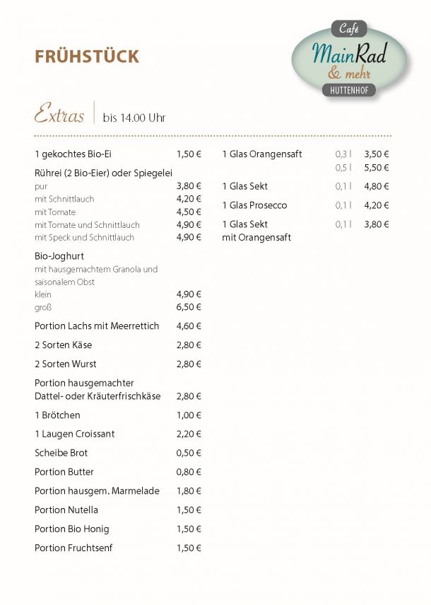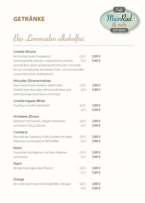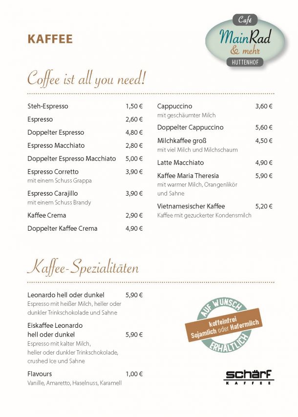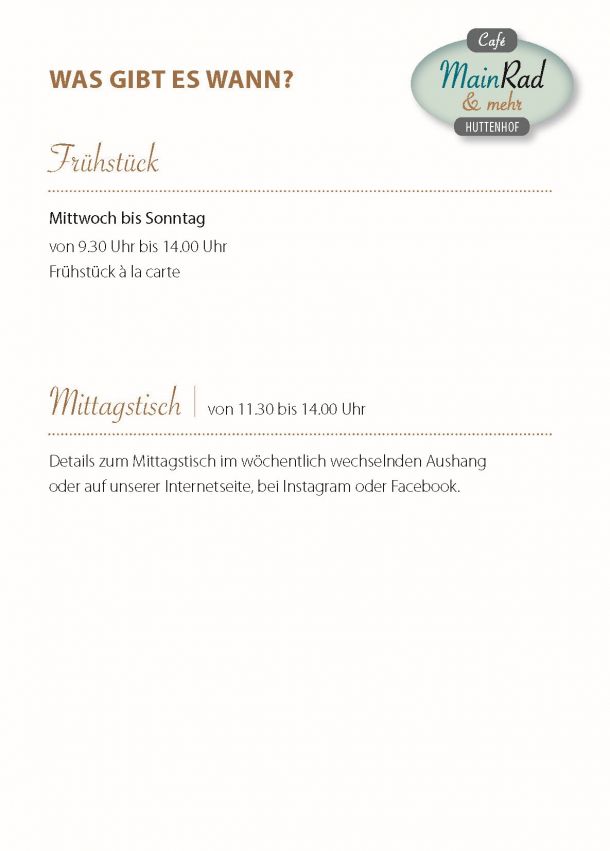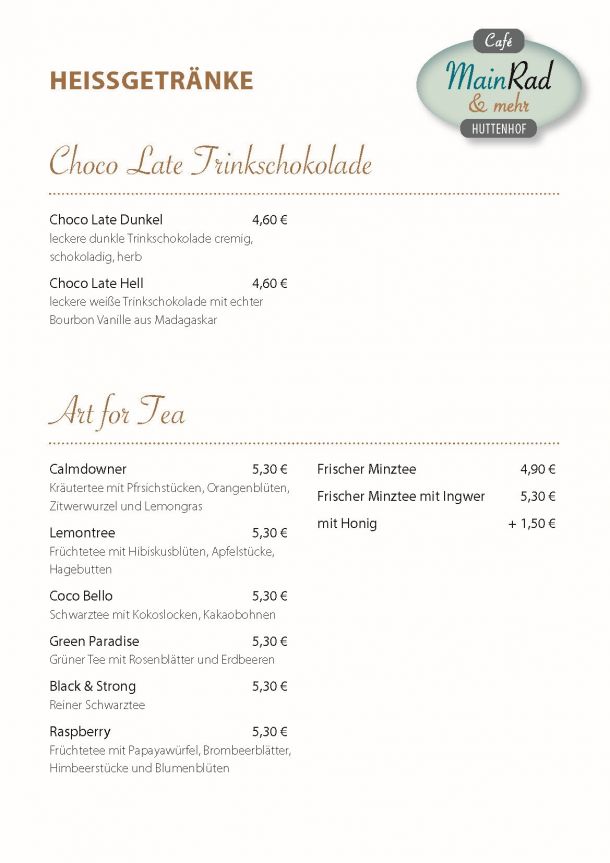 Das Team vom Café MainRad heißt Sie/Euch herzlich Willkommen und möchte Ihnen/Euch eine angenehme und entspannte Zeit in gemütlichem Ambiente bereiten.