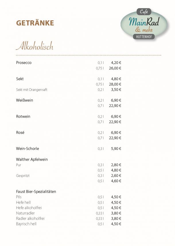 Speise- und Getränkekarte